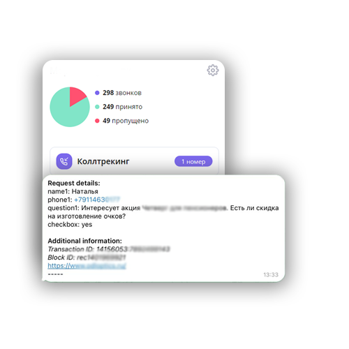 Коллтрекинг для отслеживания, откуда именно приходят звонки + запись разговоров, чтобы контролировать эффективность сотрудников и минимум 5 из 10 звонков завершались записью в вашу оптику.
