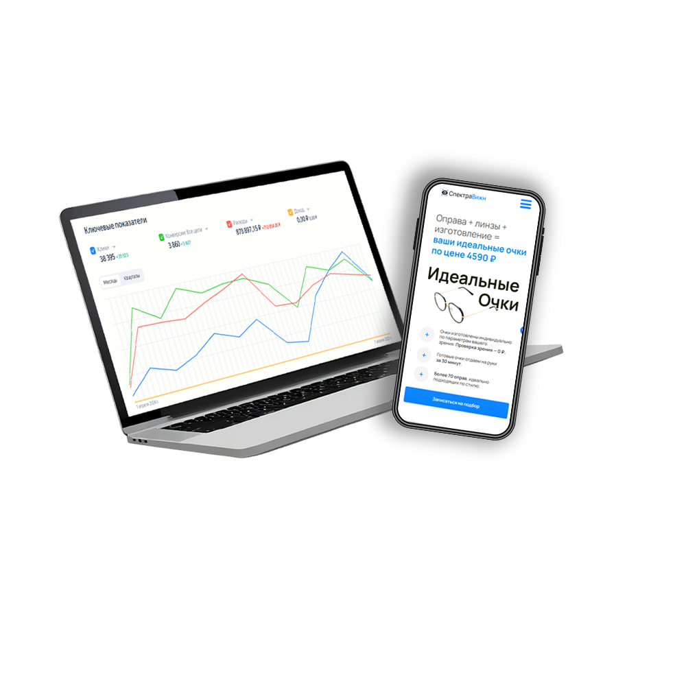 Никаких длительных разработок сайтов по 1.5 месяца. У нас уже есть сайты, предложения и рекламные инструменты которые 100% приводят клиентов в оптику
