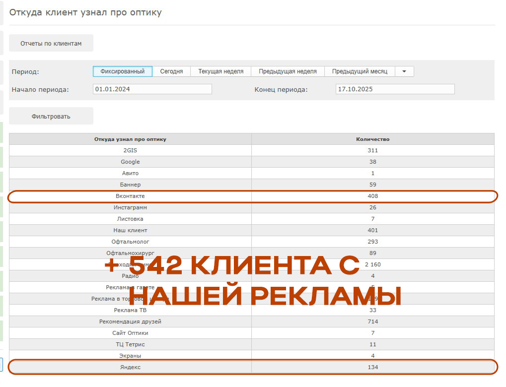 Оптика Смоленск ведем комплексное привлечение клиентов +542 клиента за год работа
