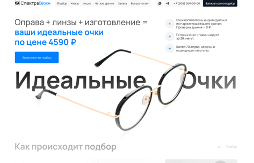 Никаких длительных разработок сайтов по 1.5 месяца. У нас уже есть сайты, предложения и рекламные инструменты которые 100% приводят клиентов в оптику