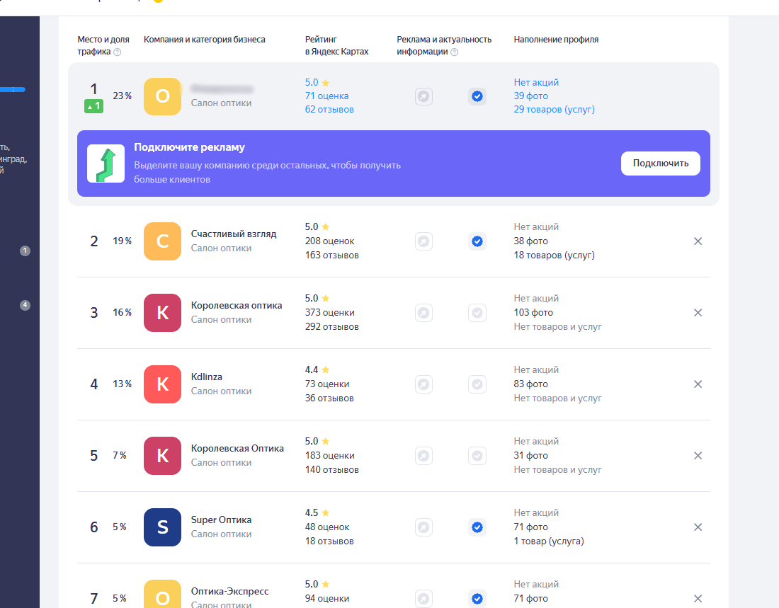 Оптика под NDA. Вывели филиал в топ 1 среди конкурентов яндекс карт за 1 месяц